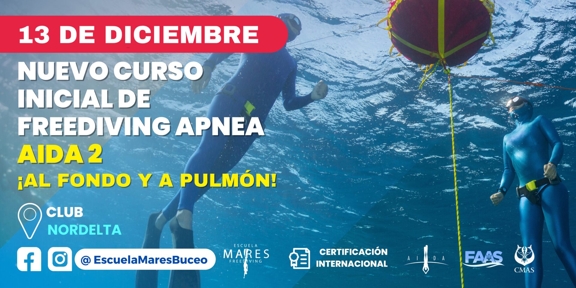 Recomendable para todos quienes practicamos esta actividad, aprenderás sobre seguridad y manejo de emergencias. Tiene como requisito ser buzo Open Water certificado.